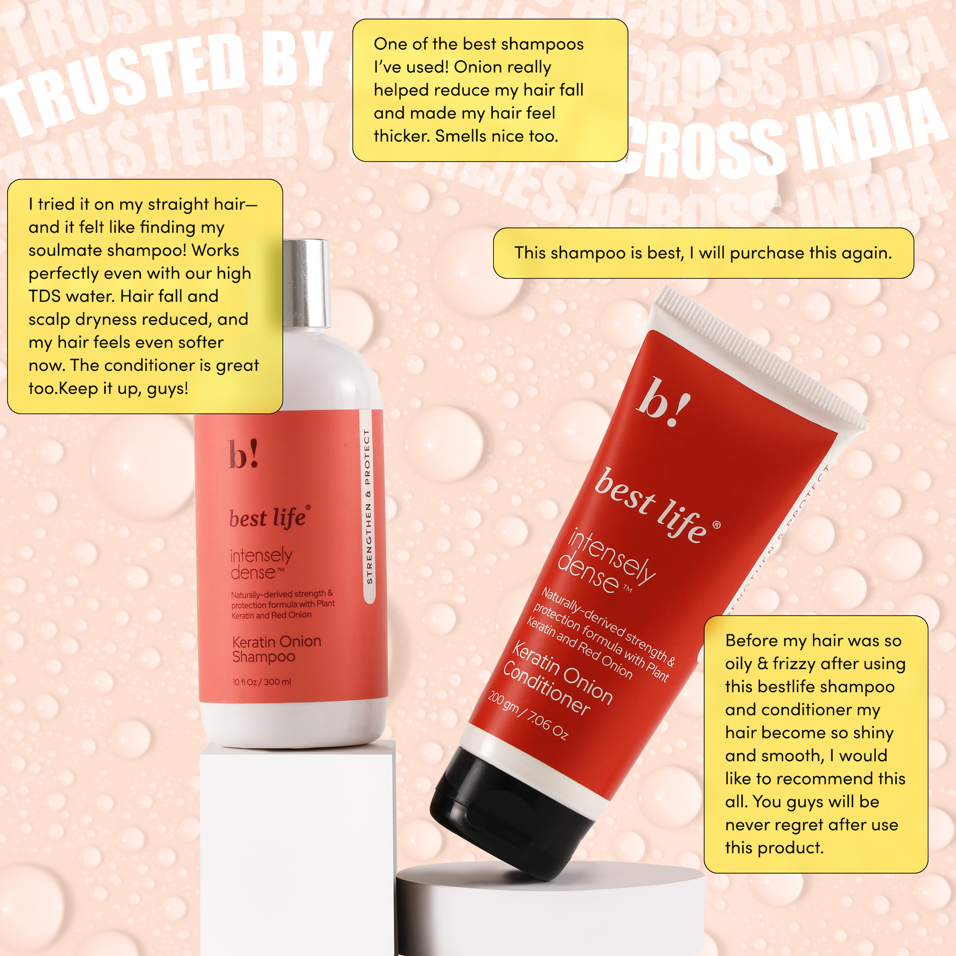 Super-charged with hair-growth boosters – Onion extract, Plant-keratin, Pro-vitamin B5, Nigella Satvia and Biotin, this formula ensures hair is strengthened and cleansed.