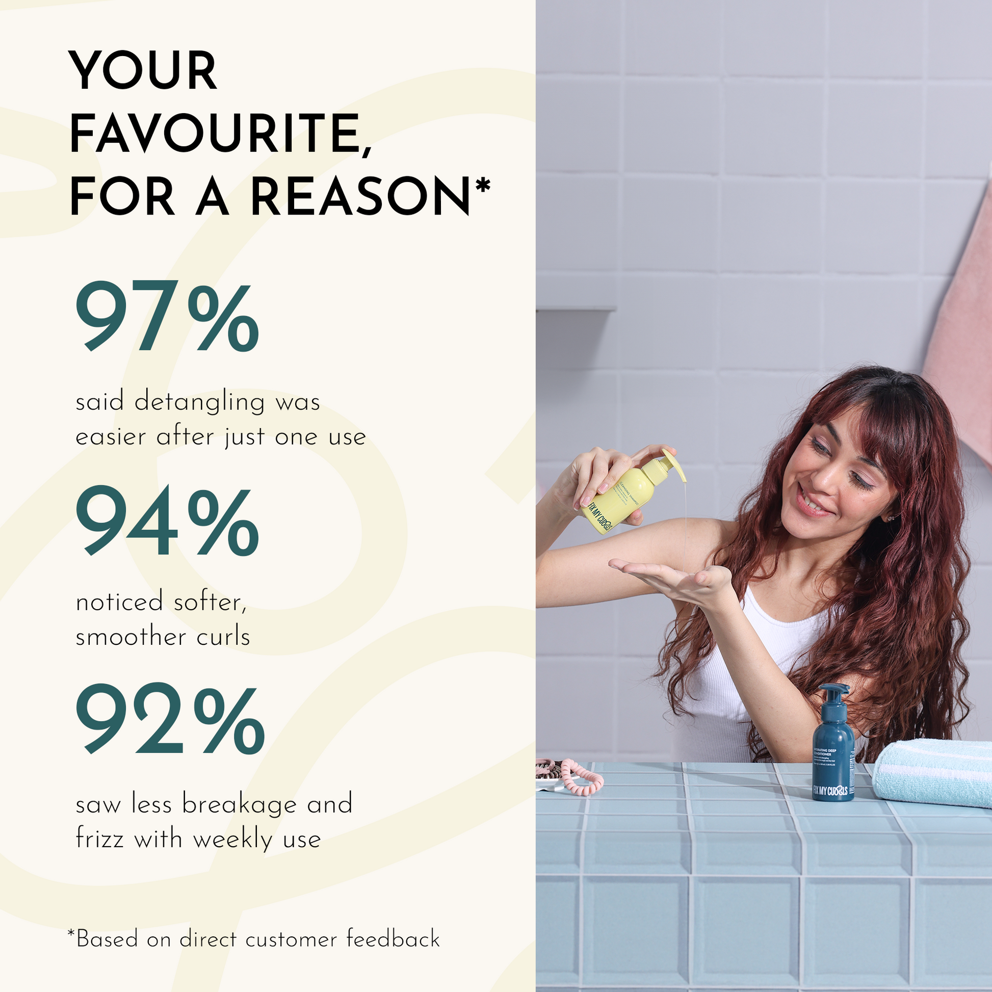 Using our conditioner is the ultimate TLC for your dry curls! Rake as many pumps as you desire from your roots to your lengths and wash off in 5 minutes for a quick condition! To deep condition, leave it in for 20-30 minutes with a shower cap on, and a heat cap for added moisture, and then rinse off! Walk out of the shower with bouncy, hydrated curls with the help of 8 oils, butters and proteins. Use this conditioner to help detangle your curls before you step out of the shower, do this with a wide tooth comb/or your fingers.